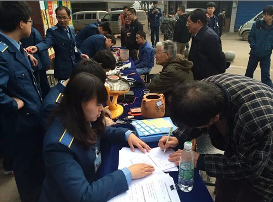 上午9点,电子学院学生干部及电子协会成员准时到达并布置活动现场:挂横幅,搬运工具,摆放桌椅,连接电源。活动刚开始便有很多同学闻讯赶来报修,“开关不灵,电脑启动慢,电机损坏,插头老化……”,电子协会秘书处的两位同学仔细检查并了解家电的损坏情况,一丝不苟地进行维修登记。附近居民一听说有义务维修的活动,立马翻出“雪藏”多年的旧家电,电视机、微波炉、电吹风、电磁炉……不一会儿便在维修处堆成了一座小山。