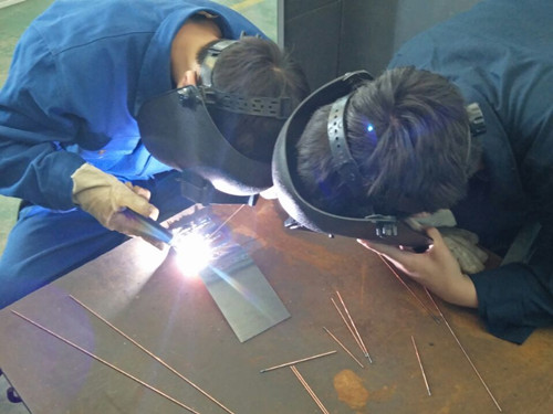 焊接专业学生专心学习专业技能