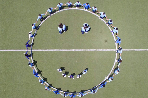 每年的5月8日是世界微笑日,它也是唯一一个庆祝人类行为表情的节日。自订立这个节日至今,已有69个年头。本次活动包括微笑卡片发放、微笑闯关、微笑快闪三个部分。节日当天,心理部成员们将记录着暖心祝福的微笑卡片发放到校园过往的同学手中,倡导大家将自己的微笑和温暖传递给身边的每一个人;微笑闯关活动,参与学生两人一组争先闯关,用微笑赢得胜利;最后,整个活动以30名学在操场上合力拼出一张“笑脸”而圆满结束。