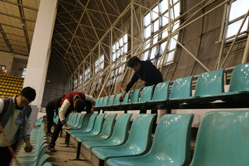 体育馆作为我院大学生举办活动、锻炼身体的主要场所,需要大家共同来维护和营造一个舒适的环境。通过前期活动宣传,活动当天有近百名志愿者参加义务打扫。下午2点,在学生助理蒋维老师的指导下,志愿者们分工合理,目的明确,秩序井然。大家不怕脏累,干得热火朝天,将体育馆的座位、地面、墙角等卫生死角进行了一次全面彻底的清理和打扫。经过两个小时的齐心协力,体育馆很快变得干净整洁。