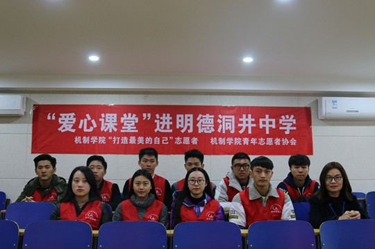 12月12日下午,我院机制学院“打造最美的自己”志愿者和机制学院青年志愿者协会代表10余人组成的“爱心课堂”公益科普教育活动走进长沙市明德洞井中学。