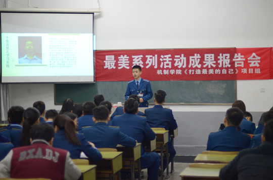 报告会分二个部分进行,第一部分为《我的美丽行动》,第二部分为《我的美丽故事》。《打造最美的自己》项目负责人以讲解幻灯片的形式,对我的美丽行动如“最美队列”、“最美制服”、“最美微笑”、“最美孝行”、“最美情话”、“最美公益”、“最美礼貌”(见到老师问声好)、“最美寝室”、“最美劳动”等内容和我的美丽故事如“十佳百优大学生”等感人事迹作了汇报。随后,获评十佳百优大学生的同学在会上作了经验介绍,最后对在“最美系列”活动中表现突出的优秀工作者进行了表彰。《打造最美的自己》项目指导老师凌晨,是一年来最美系列活动开展的实况的见证者。会上,凌晨老师表示希望项目组成员不忘初心,并坚定地将美传承下去,希望航院学子用最美的情怀、最美的行动为学院争创全国文明高校添柴加火。