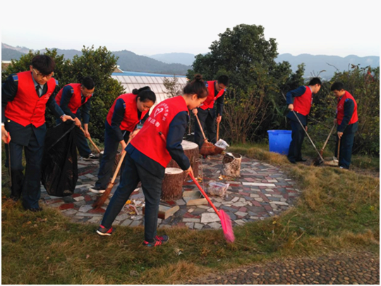 志愿者打扫后山卫生