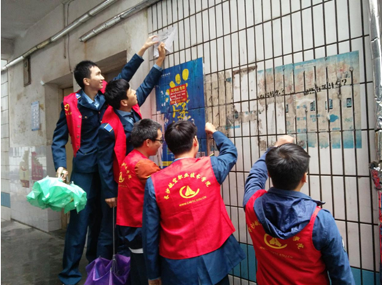 志愿者们齐心清除“牛皮癣”