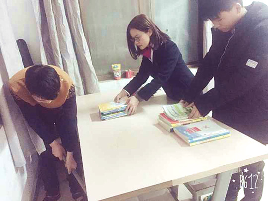 老师帮助学生整理书桌