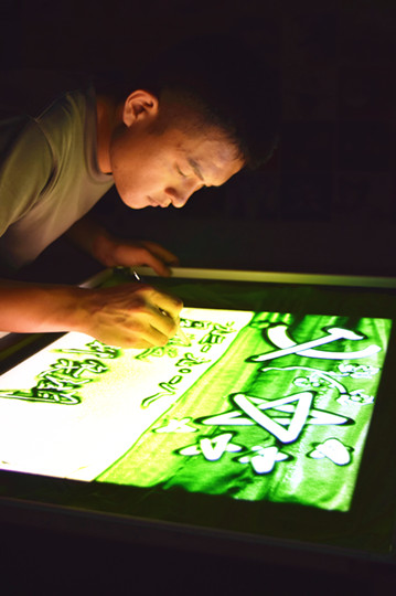 士官学员正在绘制沙画