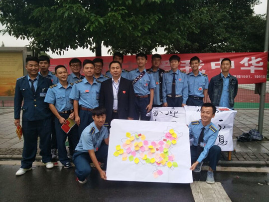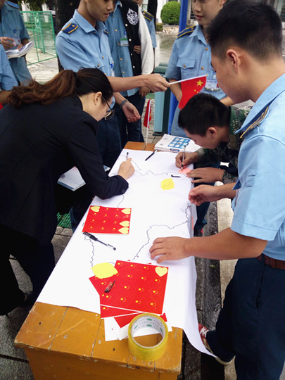 9月29日中午,为迎接中华人民共和国67周年华诞,我院机制学院焊接1501班与焊接1502班于主教主干道举办了以“喜迎国庆,爱我中华”为主题的爱国主义行为活动。活动以向路过的同学老师们送小国旗,并请其在准备好的便签上写下对祖国的美好祝愿的形式,简洁又深刻的表达了我院同学对祖国的感恩之心。活动将同学们对祖国满满的爱与祝福都转化成文字,布满在中国地图的各个角落。