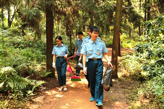 同学们在纪念馆周围打扫