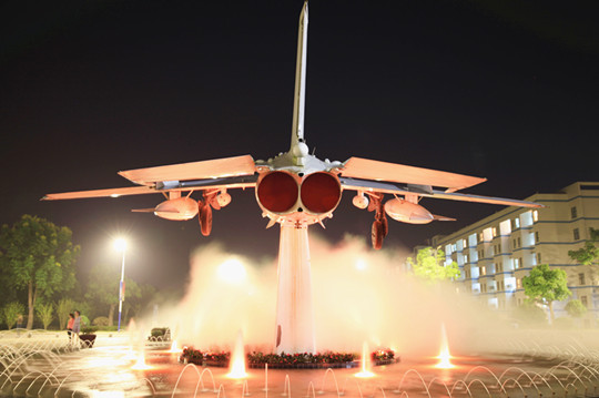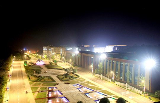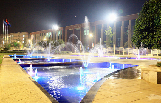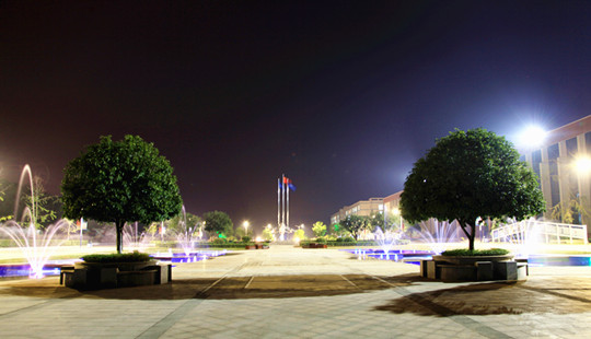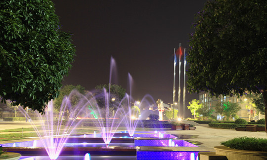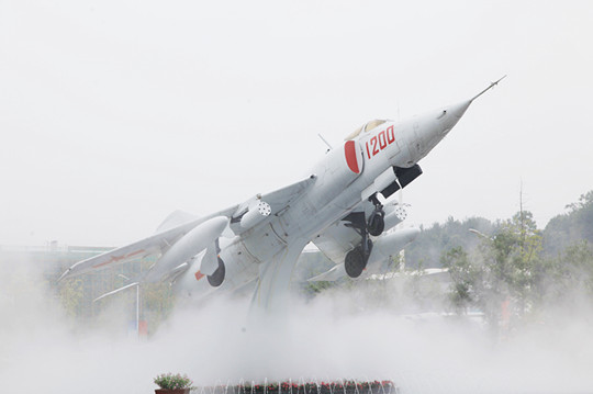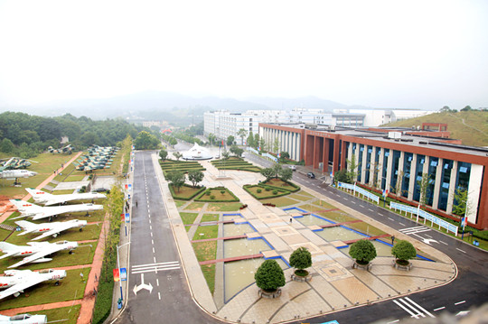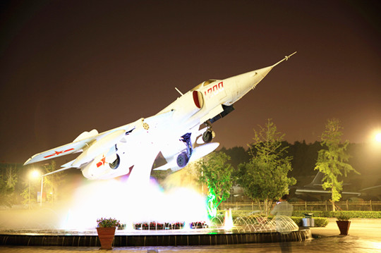 彩色的“强五”飞机换个角度再看“强五”飞机音乐灯光喷泉夜色下的航空广场新建成的喷泉为航院增添了生机俯瞰航空广场夜景雨中鸟瞰图 腾空翱翔的飞机 ( 摄影 刘永忠 )