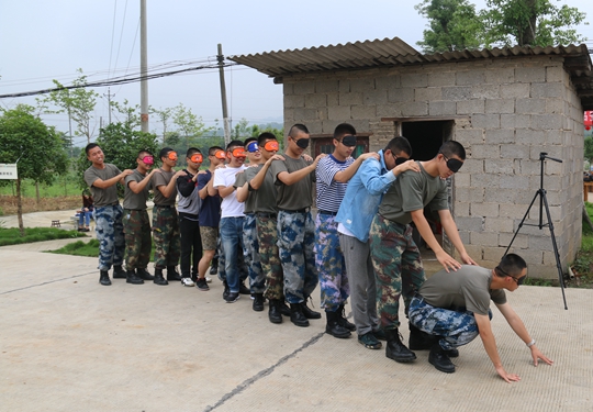 活动在“仙人指路”的游戏中拉开帷幕。所有队员分成几组,每组排成一队,除队长外全部蒙上眼睛,根据排在最后一个的队长传递的肢体动作来完成指定任务。此游戏的重点在于队员们彼此之间失去语言的交流,失去视觉的判断,考验队员们相互间的信任与彼此间的协同合作能力。随后进行的“舌尖上的士官生”比赛中,从食材的收集到烹饪再到一道道美味佳肴上桌,全程都由士官学员们分组完成。在此过程中,除了考验团队意识与分工合作外,还需要每一个人各施才华,才能在这场“从无到有”的厨艺大比拼中成为佼佼者。