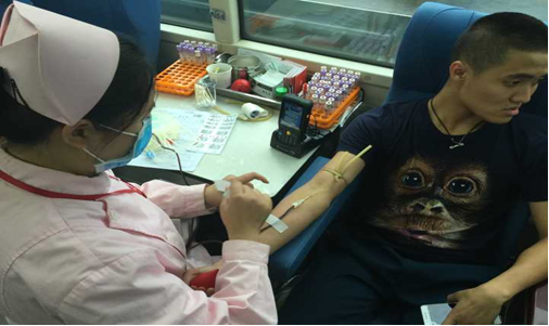 有献血的热情是好事,但不是所有的人都符合献血条件。根据专业医生的介绍,为了保障献血者与被献血者的生命安全,献血工作是要经过严格审核的。医生对部分适合的同学进行了抽血工作。