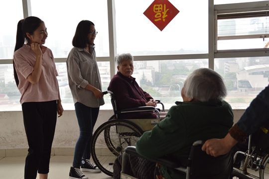 志愿者们陪老人聊天