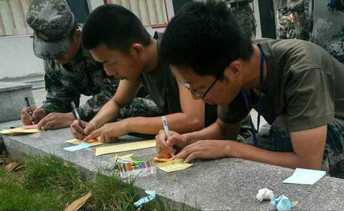 士官学员用心地写下对母亲的祝福