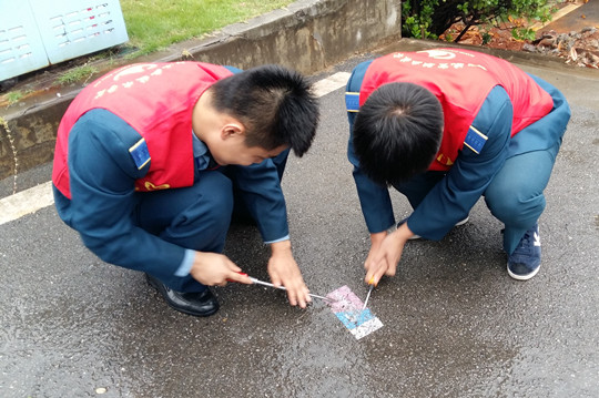 同学们身着志愿者工作服,各自携带抹布、水桶、铲刀等工具对学生一食堂、二食堂、第一教学楼、第二教学楼、航空维修实训中心等处的墙面、地面张贴的小广告进行了彻底清除。大家分工合作,经过两个多小时的辛勤劳动,校园内大部分的广告都被清除干净。