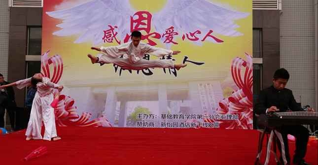 2015年11月25日中午12点整,由基础教育学院心理部主办的“感恩爱心人,回报恩情人”大型感恩文艺汇演在我院圭塘校区体育馆门前举行。