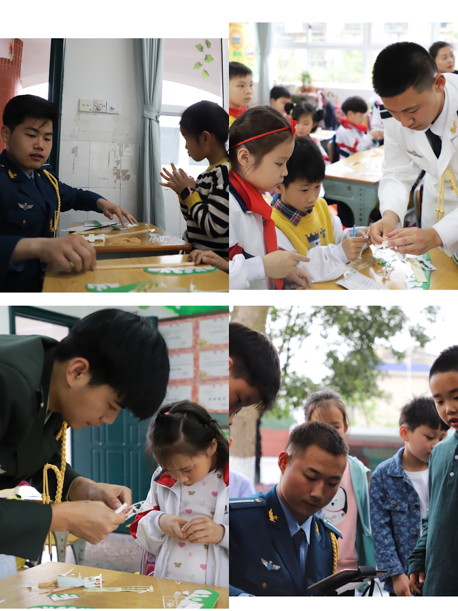活动伊始,小朋友们将各自的梦想写在纸上并贴在飞机两翼,通过五名同学轮流上台讲解组装飞机的方式,增强了课堂的参与感,把老师讲授的传统课堂模式转变成了同班同学自己讲授,促进了同学们集中精力积极参与到学习中去。在小朋友们组装飞机时遇到的问题时,我院学生志愿者们耐心体贴的为他们进行讲解与示范。活动中,小朋友们认真听课,同时也学习了许多有趣的航空知识,这不仅丰富了他们的课外知识,也激发了对航空知识的兴趣,一颗关于飞翔的梦想,一颗保卫祖国的梦已悄然驻扎在学生童稚的心田。