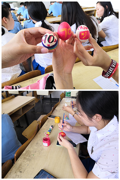 9月23日下午,管理学院劳卫部在主教406举办了“喜迎新中国成立70年”主题活动。此次活动以在鸡蛋上作画,来表达青年学子们心中对新中国成立70周年的喜悦和对祖国的热爱。活动由劳卫部副部长梁天琪带领现场同学们合唱《我和我的祖国》并介绍本次活动设计寓意。随后大家开始在煮好的鸡蛋进行颜料彩绘,同学们凭借着内心对祖国的热爱与自豪进行自由创作。最后呈现在我们面前的有“士兵保卫五星红旗”、“五彩新中国”、“中国我爱您”等寓意深刻而颜色鲜艳的作品。桌面上滚动的五彩斑斓的鸡蛋,同学们的欢声笑语,将现场气氛推向了高潮。