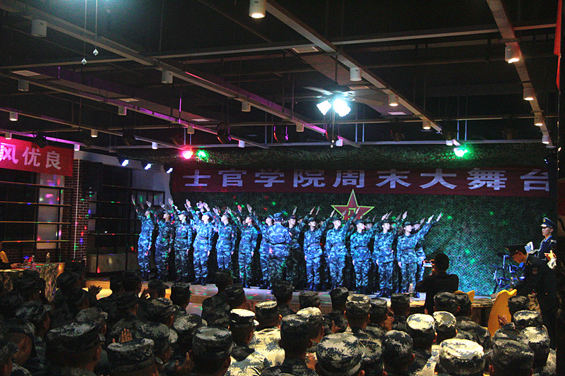 “各位领导,亲爱的同学们,士官学‘周末大舞台’又如期与你见面了……”每当到周末,在跳马校区体育馆或者灯光篮球场、圭塘校区饭堂二楼就会传来这样熟悉的话语,而后就是士官学员在舞台上尽情展示自己的才艺,在紧张的学习训练之余让广大学员们享受一场精神大餐,台上台下都沉浸在轻松快乐的氛围中。据了解,为深入践行“三为”育人理念,提升士官学员人文素质,士官学院经研究决定,从10月份开始,每周星期五或星期六晚上举办“周末大舞台”,以各大队下属的营为单位,区分跳马和圭塘校区组织1台演出,重在挖掘人才、展示自我、鼓舞士气、提升素养。截止目前已举办4期,参演学员400余名,到场院内外观众近6000名。