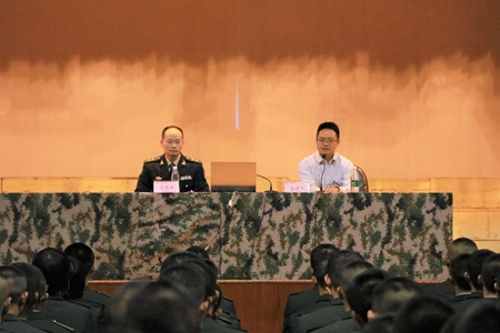 11月12日下午,火箭军士官学校政治工作教研室教员岳开封、吴宏伟来我院为火箭军定向培养士官作“火箭军发展史和砺剑精神”专题宣讲。担负火箭军定向培养士官教学和管理的老师、火箭军定向培养士官学员共计500余人聆听了宣讲。宣讲活动由学院党委副书记蔡海鹏主持。