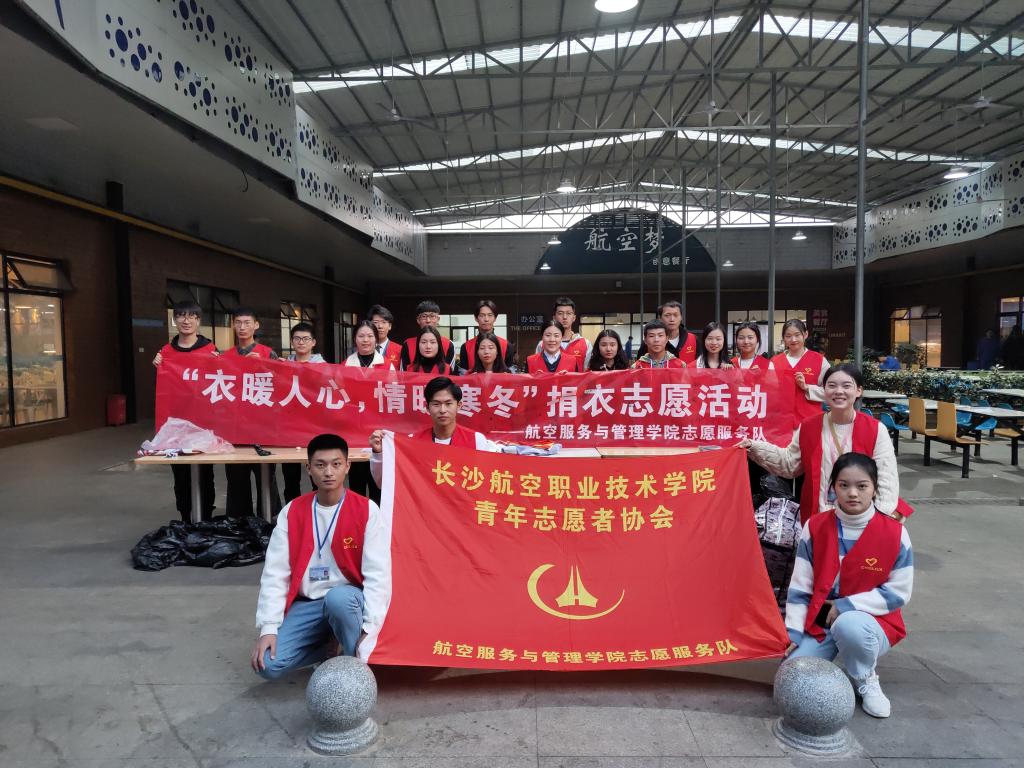 为帮助贫困地区人民改善他们的生活状况,培养大学生资源回收利用的观念,提高大学生的责任意识。航空服务与管理学院青年志愿者协会联合协作单位长沙绿茵环保公司开展了 “衣暖人心,情暖寒冬”捐衣活动。
