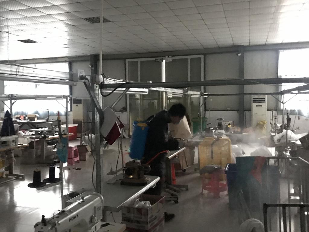 在随后的几天里,他每天都穿着不透气的防护服,背着十几斤重的消毒桶,跟着专业消毒人员,边学边干,穿梭忙碌在厂区里。工厂的生产环境比较复杂,分为剪裁区、成品区及库房等区域,尤其是库房内存有很多易燃的布匹皮料,酒精消毒操作中稍有不慎很容易引起火灾。因此在进行消毒时不仅需要覆盖到各个角落,还要区分哪些区域是不可以随意喷洒酒精消毒液的。此外,在工人工作的剪裁区域,还需注意既要保证消毒彻底,又要保障工人们的呼吸安全。全程认真干下来,他贴身的衣服早已被汗水湿透了。虽然工作辛苦劳累,但他依然干劲十足,坚持不懈,因为他深知肩上的责任不只是喷洒消毒液,而是在为企业安全复工复产保驾护航。后续,他还将协助配合该公司做好返城复工人员的信息登记、健康检测和安全防护知识的培训。