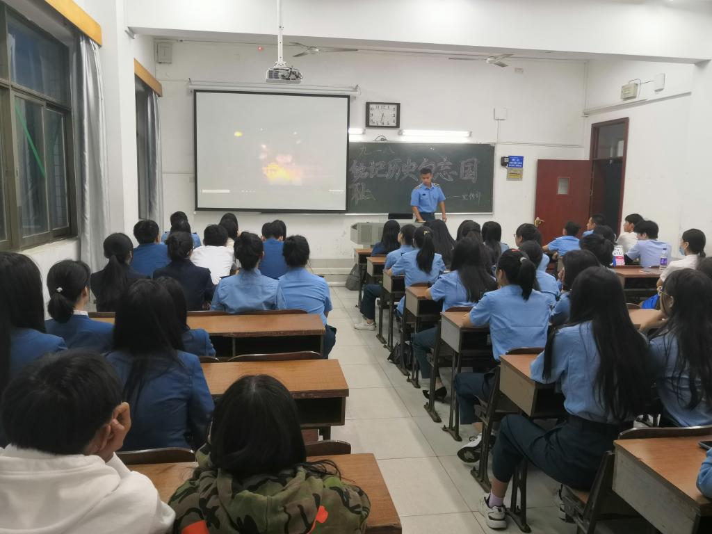 本次活动以观看九一八历史视频和集体默哀的形式进行,在实现中华民族伟大复兴发展的道路中,以爱国主义为核心的民族精神对于大学生而言是十分必要的。活动期间,主持人为同学们讲述了九一八事变的历史事件并让同学们观看了九一八历史视频,激发了广大同学的爱国热情,为学校营造良好的爱国主义风气。紧接着带领同学们集体默哀3分钟并集体宣誓“铭记历史,勿忘国耻”,为将国家建设得更加繁荣、更加富强贡献自己的力量。