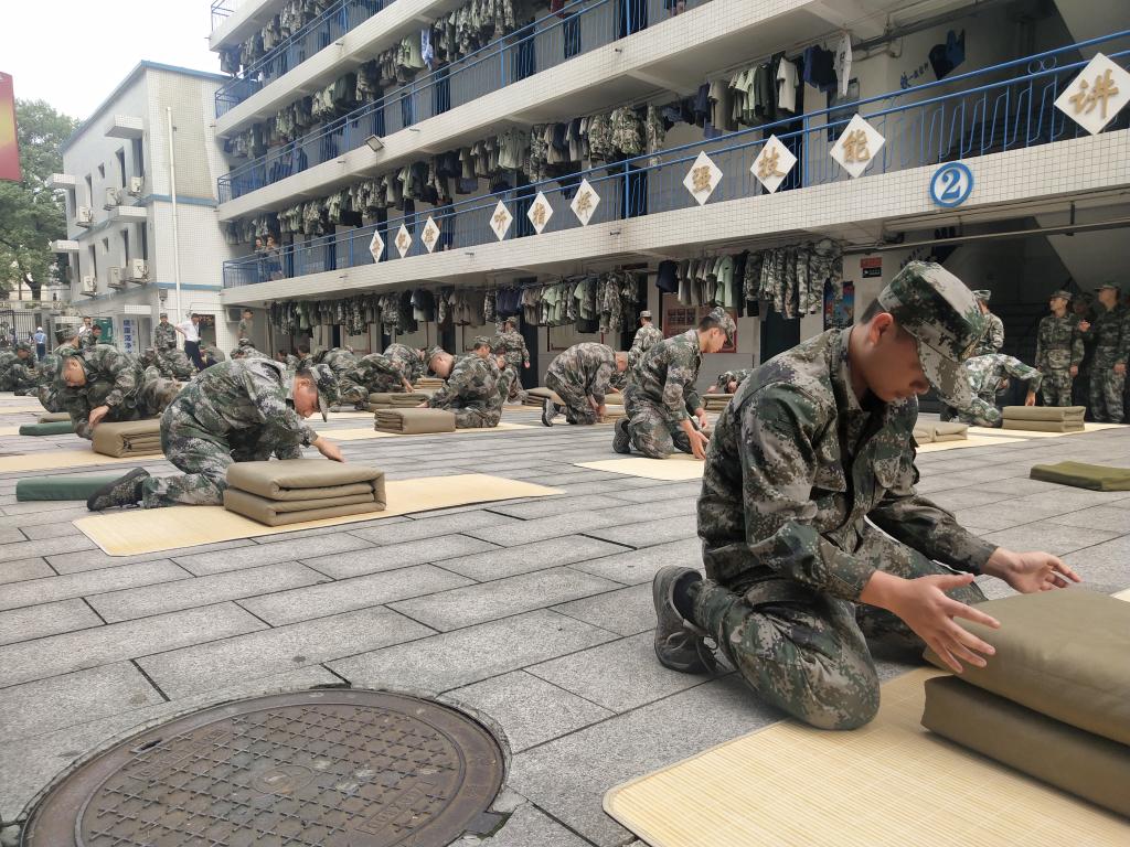 为培养士官生严谨的生活和训练习惯,提高内务质量,充分展示军人良好的作风养成,10月20日,士官学院50名士官生在营区内展开了叠军被比赛。