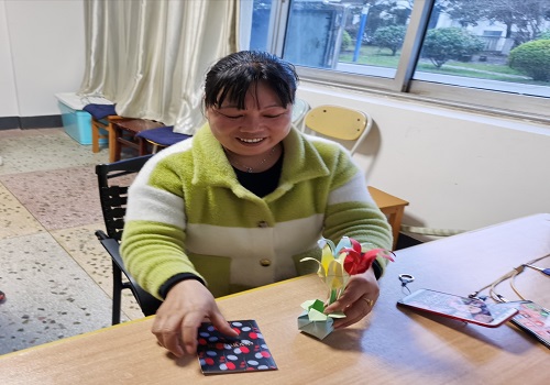 活动一开始团总支准备了三十件手工花艺,通过同学们的精心设计和制作,一张张普普通通的卡纸变成了形状各异、色彩斑斓的手工花朵。之后,心理部同学手绘贺卡,并写上对老师的祝福语。同学们热情极高,纷纷表示要把自己最满意的作品和真挚的祝福送给心爱的老师。团学干部们先后去了教学楼、宿舍楼、实训楼值班室以及阳光服务中心等多间办公室,为教工人员们送上了感恩祝福,向老师们表达了所有师生的敬意。