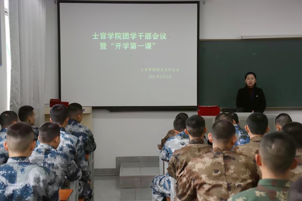 新年新气象,奋进新征程。为提高团学干部的责任意识,切实加强学生干部队伍建设,3月4日下午,士官学院在教学楼208教室召开新学期团学干部工作会议,总结上学期工作,部署新学期任务,士官学院党总支副书记曹志刚、助理、干事及学生干部60余人参加会议。