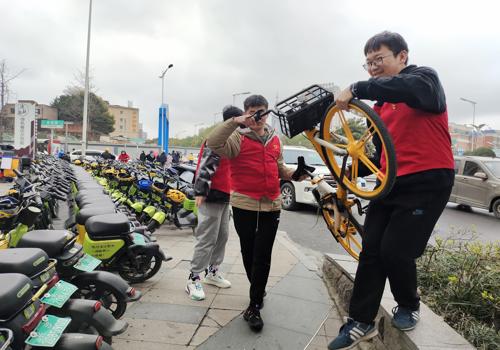 机制学院学雷锋公益活动将共享单车送回“家”活动现场