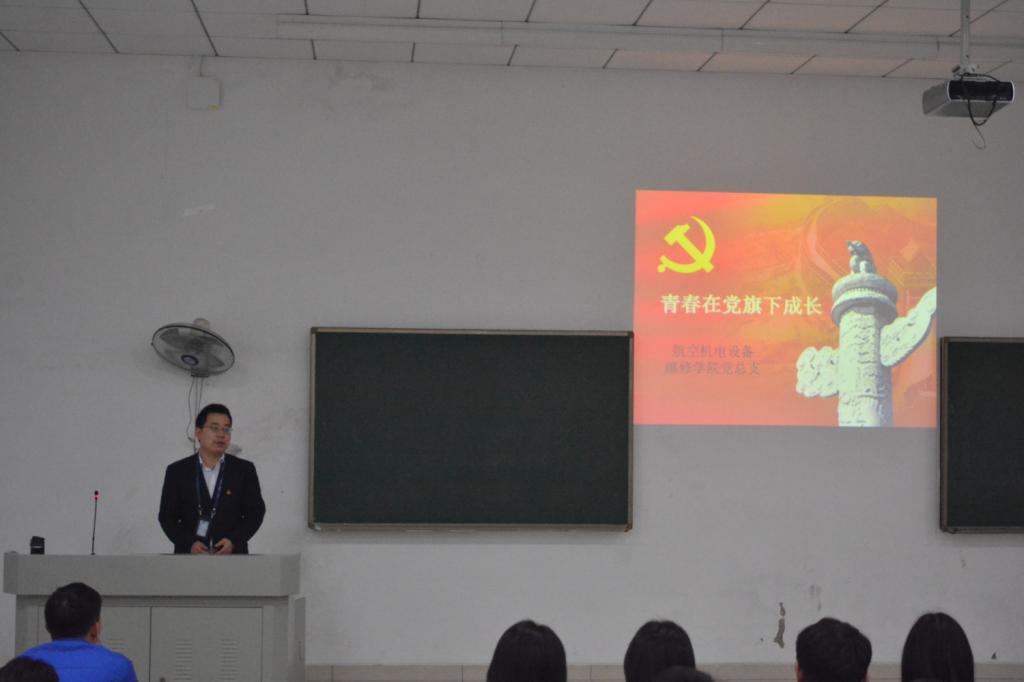 日前,机电学院党总支书记都昌兵在跳马校区航空实训中心第五阶梯教室以《让青春在党旗下成长》为题,为全体学生党员和入党积极分子上了一堂生动、精彩的党史教育课。