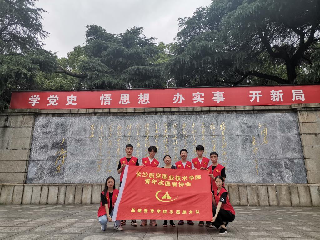 5月30日,基础学院青年志愿者党史学习小组成员在党总支书记谢红桂的带领下前往长沙市岳麓山开展红色教育主题实践活动。