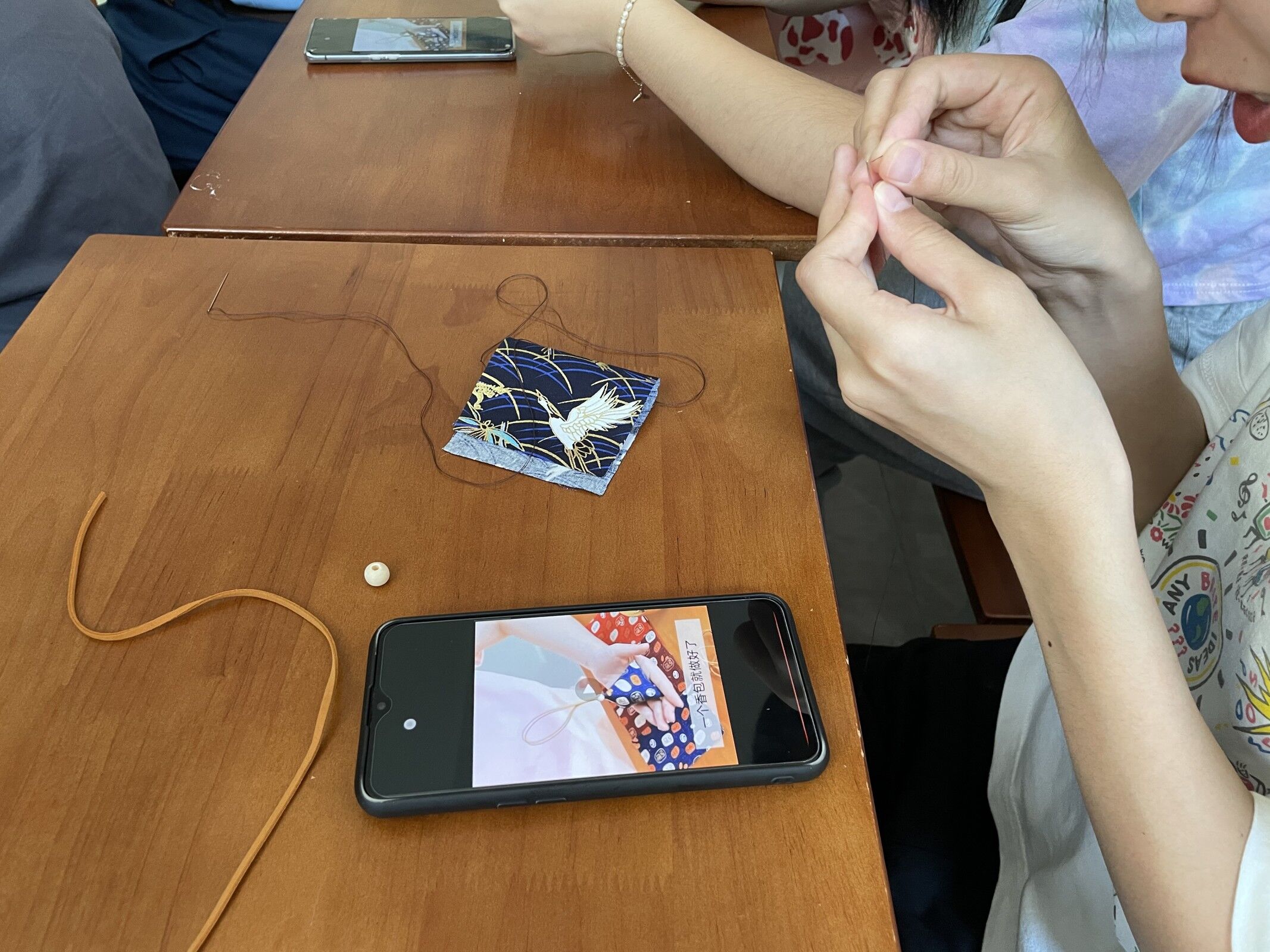 同学们认真缝制
