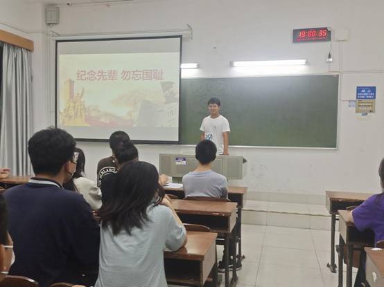 活动开始,主持人介绍了“九一八”事件发生的历史背景和过程,让大家重温历史,铭记那段中国人永志不忘的屈辱与抗争史。紧接着大家一起观看了九一八事变相关视频,视频中一幕幕场景与沉重的历史画面,再一次洗涤了在场每一名同学内心,同学们也积极分享自己故乡的英雄先烈,胡勇同学发言道:我们要把“九一八”作为民族苦难的印记,牢牢印刻在心中,学习革命烈士不畏艰难、艰苦朴素的品质,把满腔爱国之情化为勤奋学习的强大动力,为实现中华民族伟大复兴贡献力量。最后进行了问答环节,同学们积极抢答问题,也完成了此次活动的初心。此次活动也圆满结束了,同学们表示会永记民族之殇,将满腔爱国之情转化为努力学习的动力,谱写自己的青春华章。