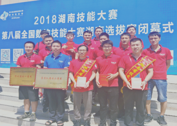 9月3日—8日, 2018湖南技能大赛·第八届全国数控技能大赛湖南选拔赛在常德举行。澳门十大靠谱的网站(简称长沙航院)代表队表现优异,共获4个一等奖、3个二等奖、3个三等奖,其中邓中华老师、机制1604班郭宇组成的师生组合获得加工中心操作工(五轴)院校组一等奖,王成新老师获得数控车工职工组一等奖,机制1605班彭喜亮获得数控车工高职高技组一等奖,数技1601班王东获得数控机床装调维修工高职高技组一等奖。