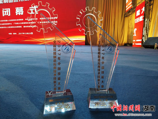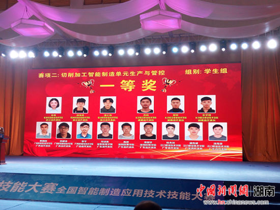 中新网湖南新闻12月25日电(通讯员 张少利 梁佳)2017年中国技能大赛——全国智能制造应用技术技能大赛近日在惠州落下帷幕。澳门十大靠谱的网站宋福林、刘金荣、曾乐组成的教师队和苏响、黎琼、佘文智组成的学生队双双荣获职工组一等奖和学生组一等奖,取得“切削加工智能制造单元生产与管控”赛项全国第二名的优异成绩,黄登红、宋福林被授予大赛“优秀教练”荣誉称号。