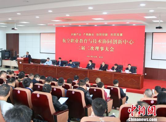 当日举行的航空职业教育与技术协同创新中心二届二次理事大会上,长沙航院与某军11厂等7家理事单位进行校企签约。 王永波 摄