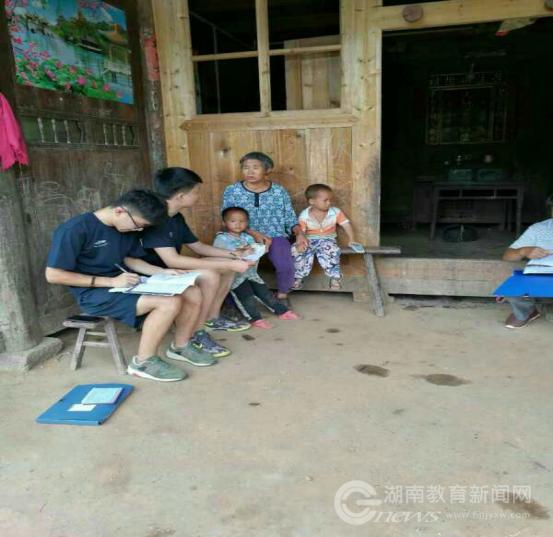 和病魔战其乐无穷。在调研期间,师生中暑、被蚊虫叮咬、蛰伤的情况常有发生。谢红桂老师喉咙发炎,马晓亮同学出了满头痱子,吴浩同学皮肤过敏,段杰同学感冒生病,吴效儒、郭航菘同学水土不服,覃奕晨同学带着胃病,蒋天翔中暑,陈志尧老师、雷静老师、王安同学、易志辉同学、邱世喜同学等被蚊虫叮咬、蛰伤,特别是邱世喜脚腕被蚊虫咬伤导致红肿,甚至走路都很困难,但为了顺利完成每日的调研任务,他们都咬牙坚持着,不愿当拖后腿的人。贺浪同学在平茶镇棉花村调研时,主动帮助居民固定房屋门窗,不小心被生锈的铁钉划伤,在就近的医务室打了破伤风针之后,又继续踏上调研之路。各种状况,层出不究,他们都坚持扛了下来。每到一户,都详细了解实际情况 :家中主要经济来源是什么、有多少田地、一年的粮食收成有多少、是否能自足、有无外出打工的家庭成员、家中是否有留守儿童、当前家庭面临的主要困难等实际问题,深入谈心交流,推进精准扶贫政策的落地。“下乡扶贫走访调研工作任务艰巨繁重,需要付出艰苦的努力,需要不同寻常的耐心和毅力,要么顶着烈日骄阳,要么顶着倾盆大雨走访农户,但我们感觉这是值得的。因为我们能够实实在在的为这些贫困户做些实事,让他们充满斗志,让他们看到希望。我们坚信通过大家的齐心协力,抢抓机遇,奋力拼搏,这些贫困户定能早日脱贫,过上好日子,实现小康梦。”调研者用一颗热忱的心温暖贫户,照亮前景。