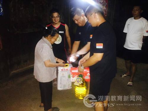 第19组在走访覃团村6,8,12组三户特困户时,看到破旧的房屋和简陋的设施,保卫处陈志尧老师组织成员自掏腰包,为特困户送上了大米、食用油以及牛奶等食品。