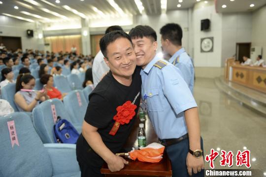 毕业生与父亲在毕业典礼上相拥。 杨华峰 摄