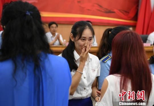 毕业生与母亲交谈时落泪。 杨华峰 摄