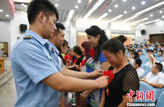 毕业生为母亲戴上代表光荣的红花。 杨华峰 摄