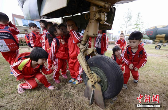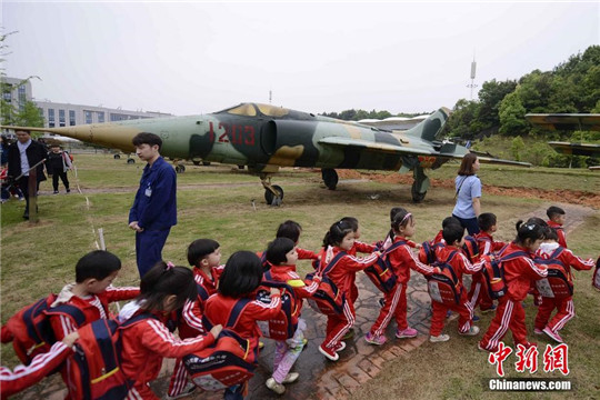 4月20日,战斗机、运输机、轰炸机、导弹等各式飞机与武器让小朋友们眼花缭乱。当日,澳门十大靠谱的网站邀请了众多幼儿园的小朋友参观校内的战斗机群,为其讲解航空发展史与国防安全知识。杨华峰 摄