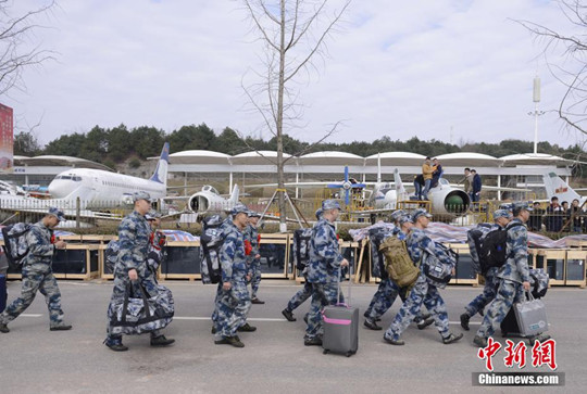 士官学员们打包好行囊走向大巴车。