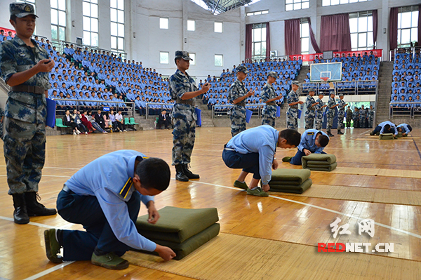 除了叠军被、射击等军训色彩浓厚的项目,汇演还重点突出航院文化特色、航空专业特色、士官英武特色。其中,由440人组成的校园文化方阵用整齐划一的动作和口号对“自强不息、止于至善”校训进行了花样演绎,使长沙航院理念文化与国防教育完美融合,实现了形式与内容的双创新。