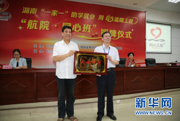 新华网长沙9月22日电 “一家一”助学就业,心连心精准扶贫。9月22日,湖南“一家一”助学就业·同心温暖工程“航院·同心班”授牌仪式在澳门十大靠谱的网站跳马校区举行。由此,长沙航空职院作为新成员正式加入“一家一”助学就业·同心温暖工程项目实施学校行列。