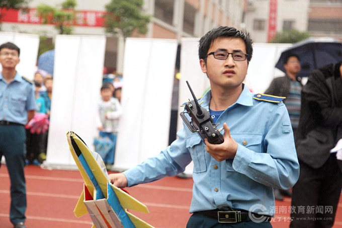 何书琪说,今天来到小学的全都是长沙航空职院飞天航模队的成员,去年,他们队在湖南长沙、常德、株洲、湘潭等地的14个中小学进行巡展,而今天的砂子塘吉联小学,已经是他们今年湖南巡展的第五站。