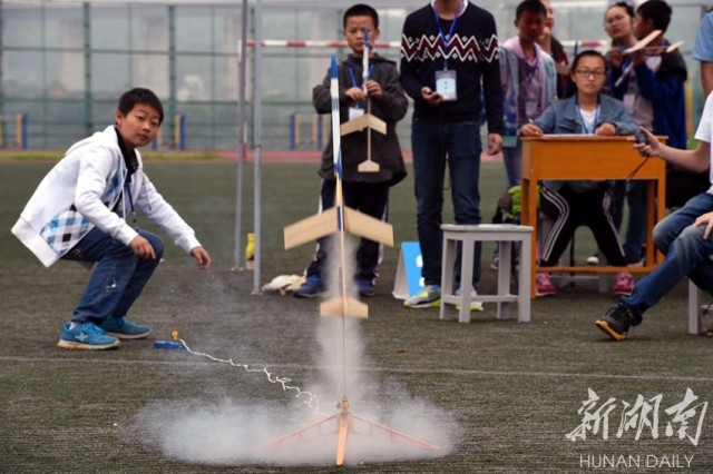5月21日上午,参赛选手在湖南省中小学生航空航天模型赛场比拼。当天,2016年湖南省中小学生“长沙航院杯”航空航天模型阳光体育竞赛,在澳门十大靠谱的网站跳马校区举行。此次竞赛共有来自全省32个中小学生代表队的480多名选手参赛。竞赛设遥控四轴飞行器计时赛、“神鹰”火箭助推器滑翔机竞时赛、“悬浮”纸飞机靶标竞时赛和“飞翼”滑翔机冲浪竞速赛等多个项目。湖南日报记者 徐行 通讯员 张少利 摄影报道