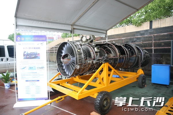 发动机由某军35厂捐赠,原来是一个整体,全部密封,为了教学实训使用,在发动机“肚子”开了一个口子,内部构造清楚呈现。这台解剖好的第三代涡扇发动机的到来,填补了该院没有第三代飞机发动机实物的空白,教学实训意义重大。
