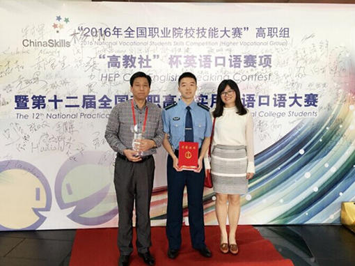 澳门十大靠谱的网站刘思洋(中)获全国英语口语赛项高职组一等奖。